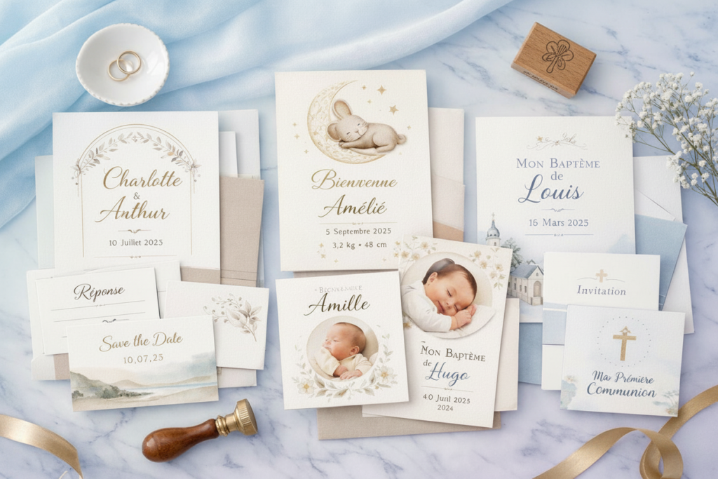 Un univers graphiques sur mesure pour accompagner les moments importants de la vie, tout en traduisant une émotion authentique et un esthétique raffinée.